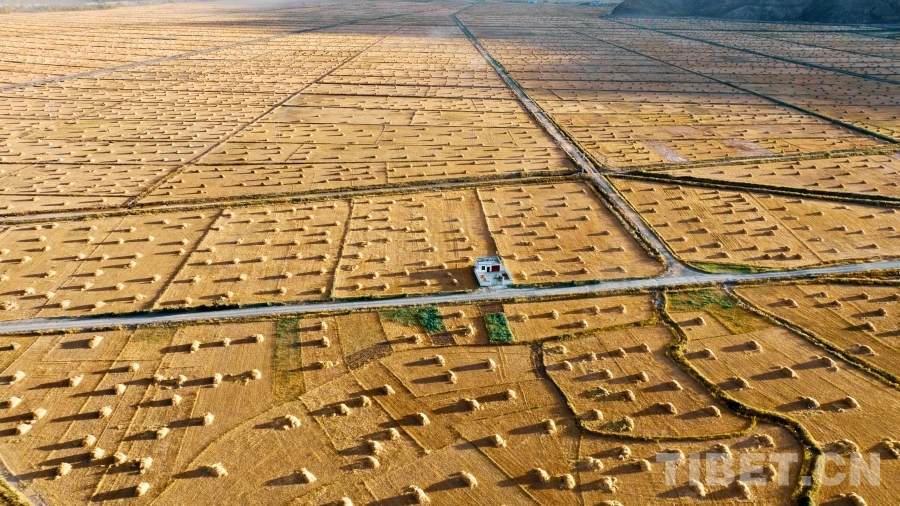 The autumn harvest scene in Karmai Township, Gyangze County, Xigaze, Xizang. Photographer: Nyima Dorje