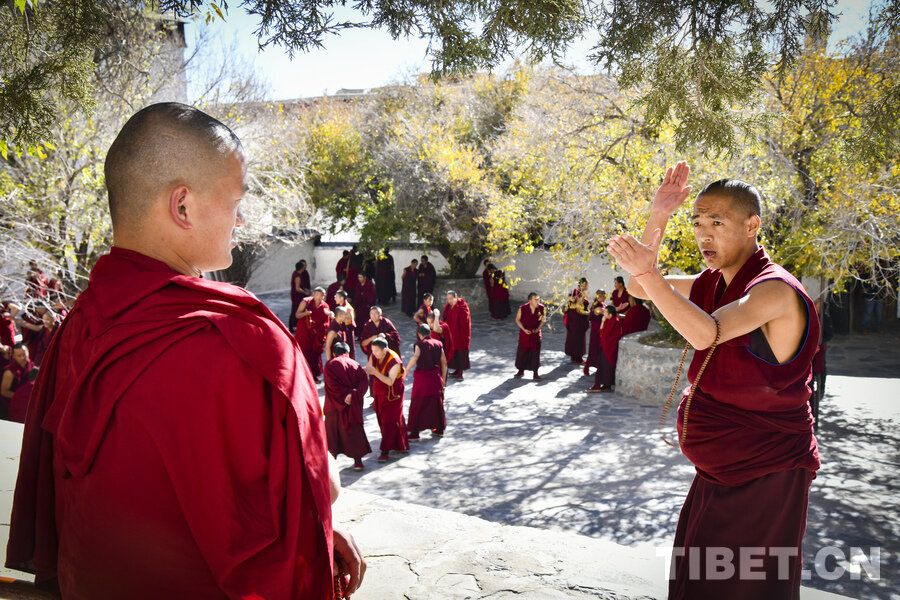 On November 13, at Tashilhunpo Monastery in Xigaze City, the Xizang Autonomous Region, monks convened in the debating courtyard and engaged in fervent sutra debate.